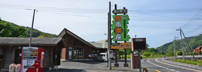 三朝温泉の入り口からさらに山中に入ったところにある小さな道の駅です。駐車場に隣接してレストランもあります。