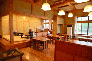 ◆ レストラン「のとろ館」(11:00〜15:00):ヒラメ(この地域では淡水魚のアマゴ、ヤマメのことヒラメと呼んでいます。)の塩焼きをメインとした「のとろ御膳」(1,500円)が人気です。
