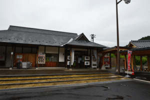 奥津温泉側にある中規模ですが掃除等手入れが行き届いてきれいな道の駅です。ふるさと物産館や噂のレストラン「おばちゃんの味 温泉亭」があります。また、ラーメンやうどんの店も隣接しています。(基本的には定休日はないようですが、私が訪れた日は社員旅行のためお休みでした。)