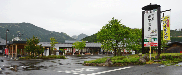 奥津温泉側にある中規模ですが掃除等手入れが行き届いてきれいな道の駅です。ふるさと物産館や噂のレストラン「おばちゃんの味 温泉亭」があります。また、ラーメンやうどんの店も隣接しています。(基本的には定休日はないようですが、私が訪れた日は社員旅行のためお休みでした。)