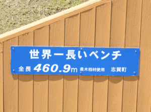 金沢から輪島に向かう途中の能登半島の東側に位置する道の駅です。周辺には砂浜やや公園、温泉、ホテル等が隣接しています。道の駅の階段を海側に登ると「世界一長いベンチ」(460.9m)があります。