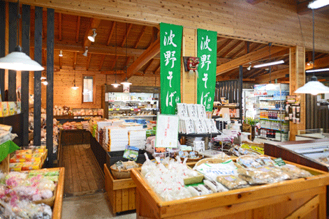 ◆ 売店(8:00〜20:00)<定休日第2水曜日>:蕎麦の加工品(そばがゆ、そば茶、そばロールケーキ)などが販売されています、「波野そば」売店内で蕎麦ソフトクリームが食べられます。