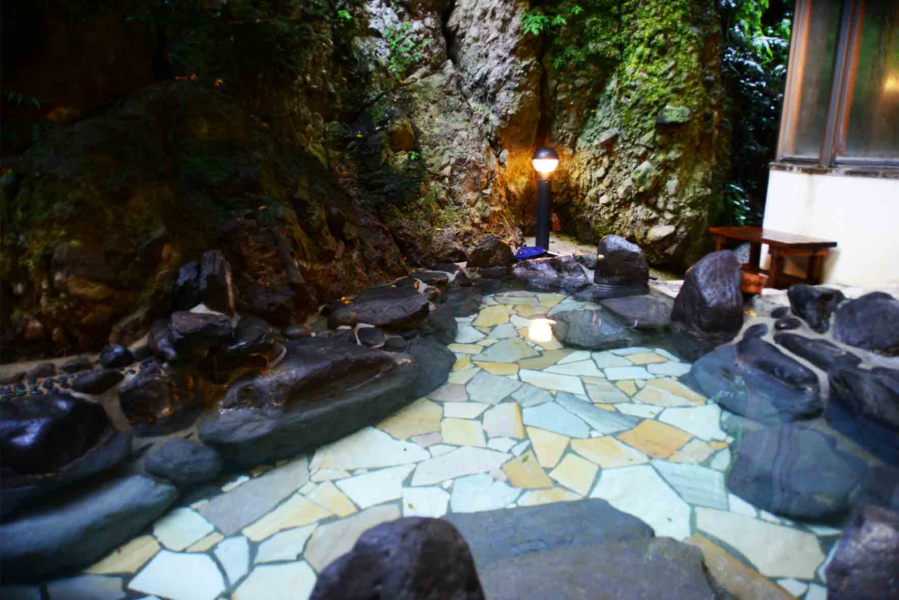 奇岩「重盤岩」の麓にある日帰り温泉施設で、高台にある展望露天風呂へはモノレールを使ってくという貴重な体験ができます。内風呂、ジェットバス、サウナ、水風呂、露天風呂があります。