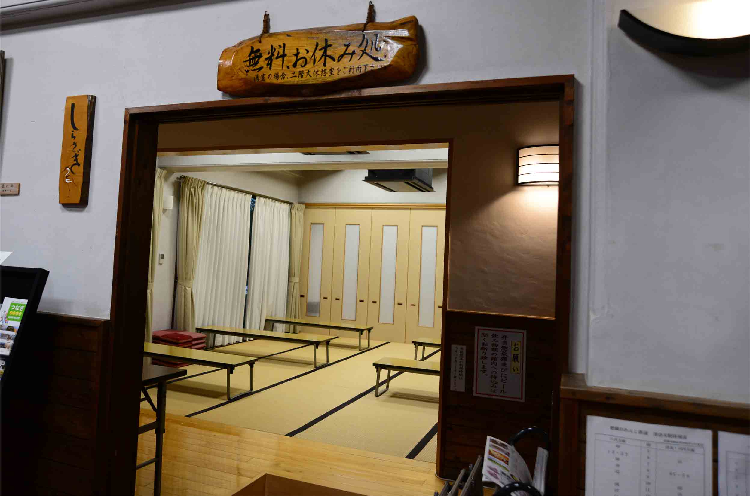 ◆ 休憩室:無料休憩室があります。(大広間)、個室10畳1,000円、20畳2,000円、70畳2,500円/1時間(入館料は別途必要)