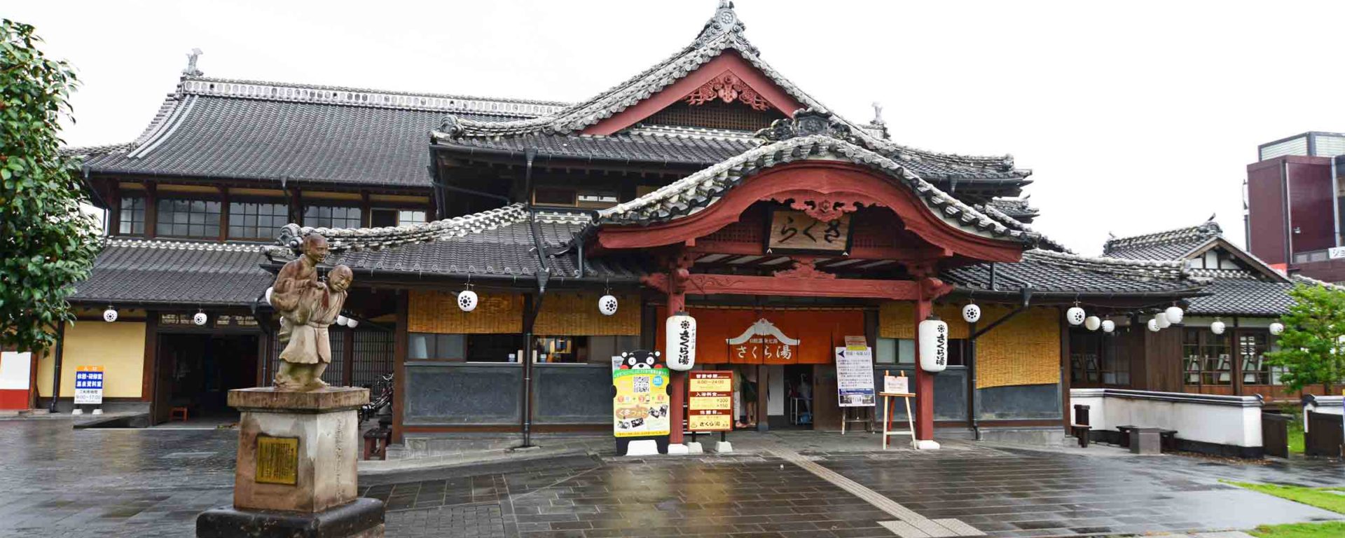 九州熊本県北部に位置する山鹿市は自然に囲まれ歴史や伝統が息づく町で九州でも歴史ある温泉地のひとつです。1640年に肥後細川藩の山鹿御茶屋に歴史の端を発し、1973年に取り壊されまでの歴史ある「山鹿温泉元湯さくら湯」が時を超えて日本の伝統工法により九州最大級の木造温泉として2012年に甦りました。
