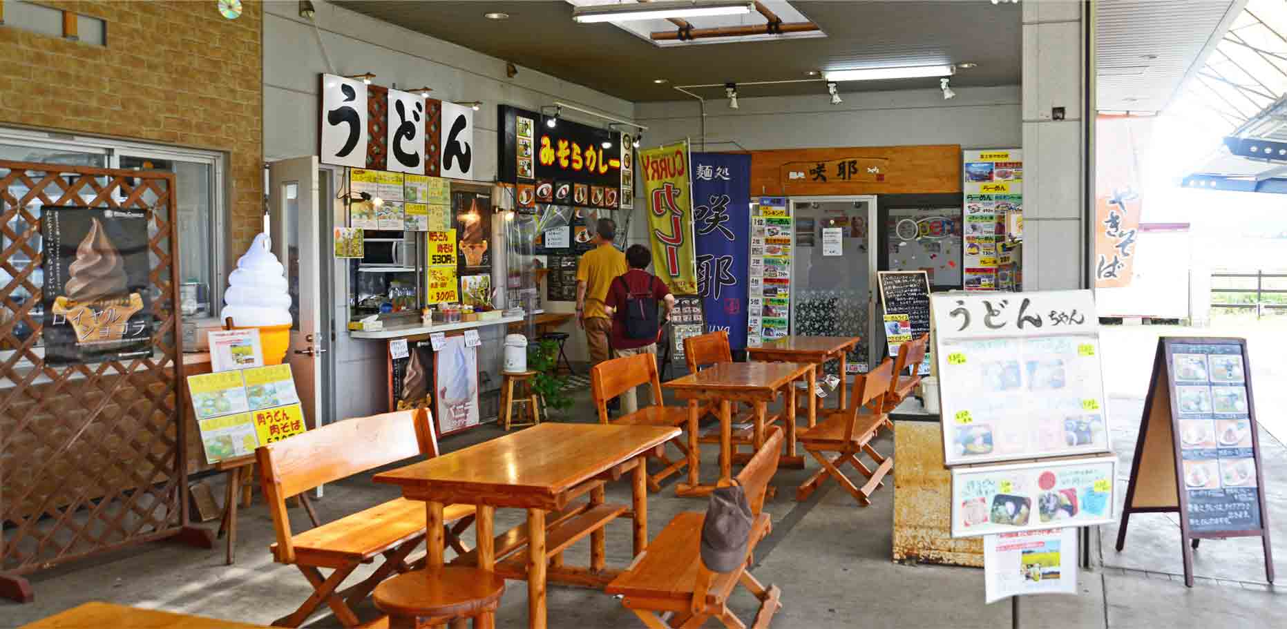 ◆ レストラン:売店の奥に軽食・喫茶コーナー(10:00〜19:00)があり、うどんや蕎麦、たこ焼きなどが食べられます。その他、ピザの専門店「ピッツェリア・フィエロ」(10:00~14:30、17:00~20:30、[土・日・祝] 10:00~20:30)が隣接しています。