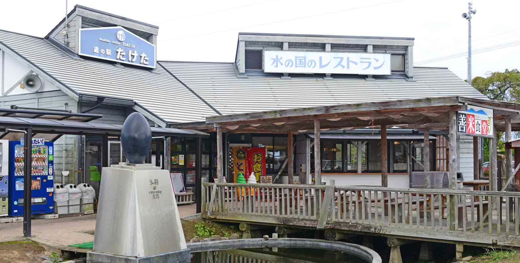 大分県竹田市大字米納、国道442号線沿いにある道の駅です。「水の国」という愛称がついています。体験も楽しめる民工芸館やイチゴ狩り(1月〜5月)も楽しめます。近くには「米賀橋」「新滝」「黄牛の滝(あめうしのたき)」などの名所があります。
