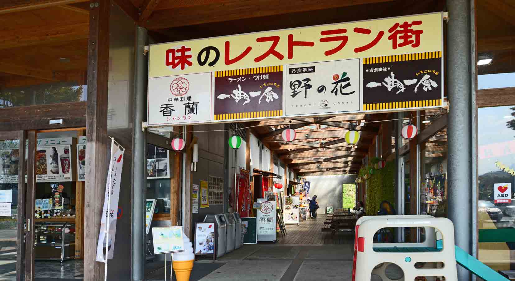 ◆ レストラン(9:00〜18:00):中華、ラーメン、和食、和洋食のお店があります。テレビでも紹介されたとり天とだんご汁の店「野の花」もあります。また、テイクアウトコーナーもあり、おやコロバーガーやイチゴのスペシャルソフトが食べられます。