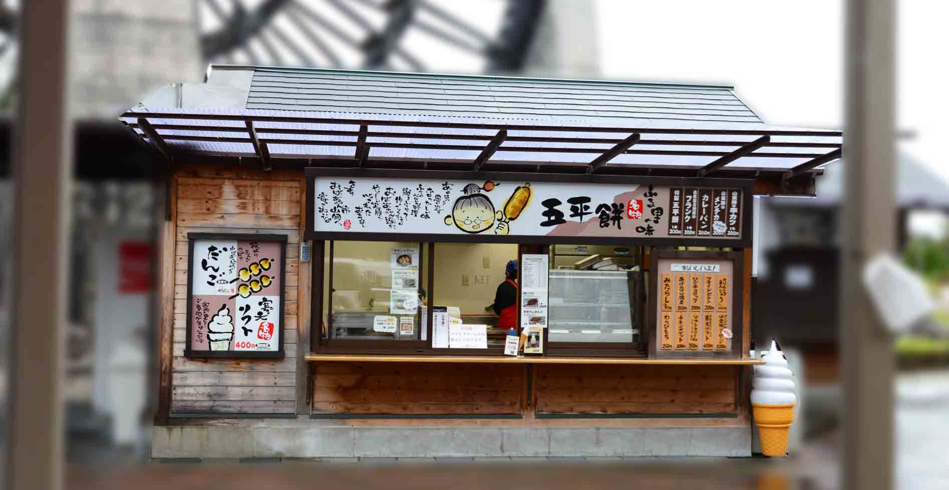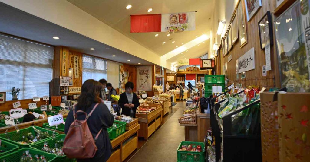 ◆ 売店(9:00〜18:00<11月〜2月は9:00〜17:00>):寒天商品(ところてん、ニッキ寒天、寒天うどん、寒天そば、寒天ラーメン、水ようかん、寒天ゼリー、寒天餅)が有名です。売店前には「ご自由にお持ち帰りください。」と花束が置いてありました。また、外にはソフトクリームや五平餅等を販売しているお店もあります。