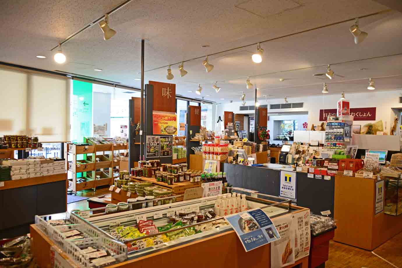 ◆ 売店(10:00〜21:00)<定休日:木曜日>:広い売店で冷凍鹿肉、大黒本シメジ、温泉商品、美山ソフト、丹波黒豆プリンなどがあります。