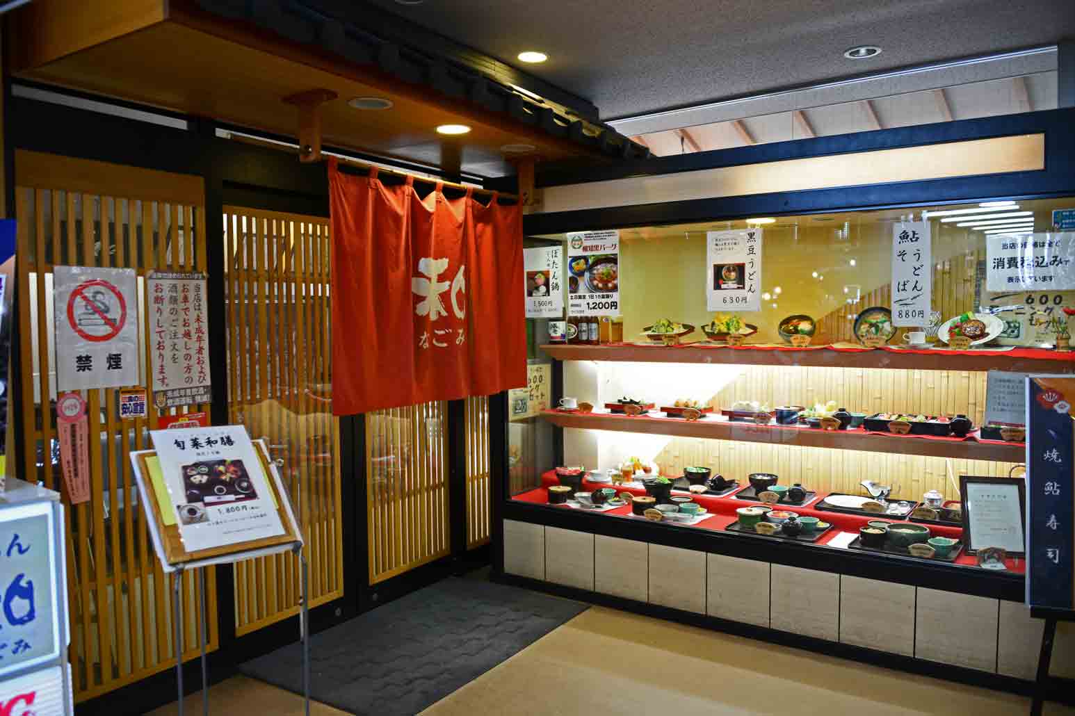 ◆ レストラン「なごみ」(11:00〜18:00):お薦めメニューが湯豆腐御膳、ひとりぼたん鍋、鮎天丼などです。