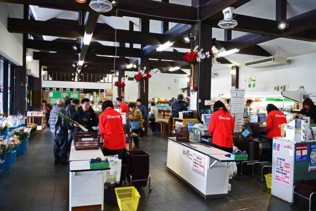 ◆ 売店(9:00〜18:00)<定休日:木曜日>:野菜の直売所には桃太郎ゴールド(トマト)やハスなど、他ではあまり見かけない商品があります。また、立田はハスが特産品で敷地内にハス工房があり、蓮根ソフトクリーム、蓮根パン、蓮根ハンバーグ、ハス粉の入ったシフォンケーキなどがありました。パン工房も建物内にあります。