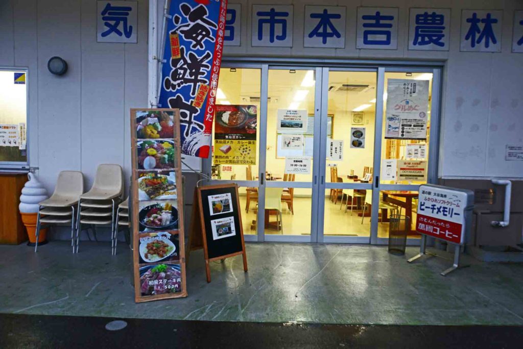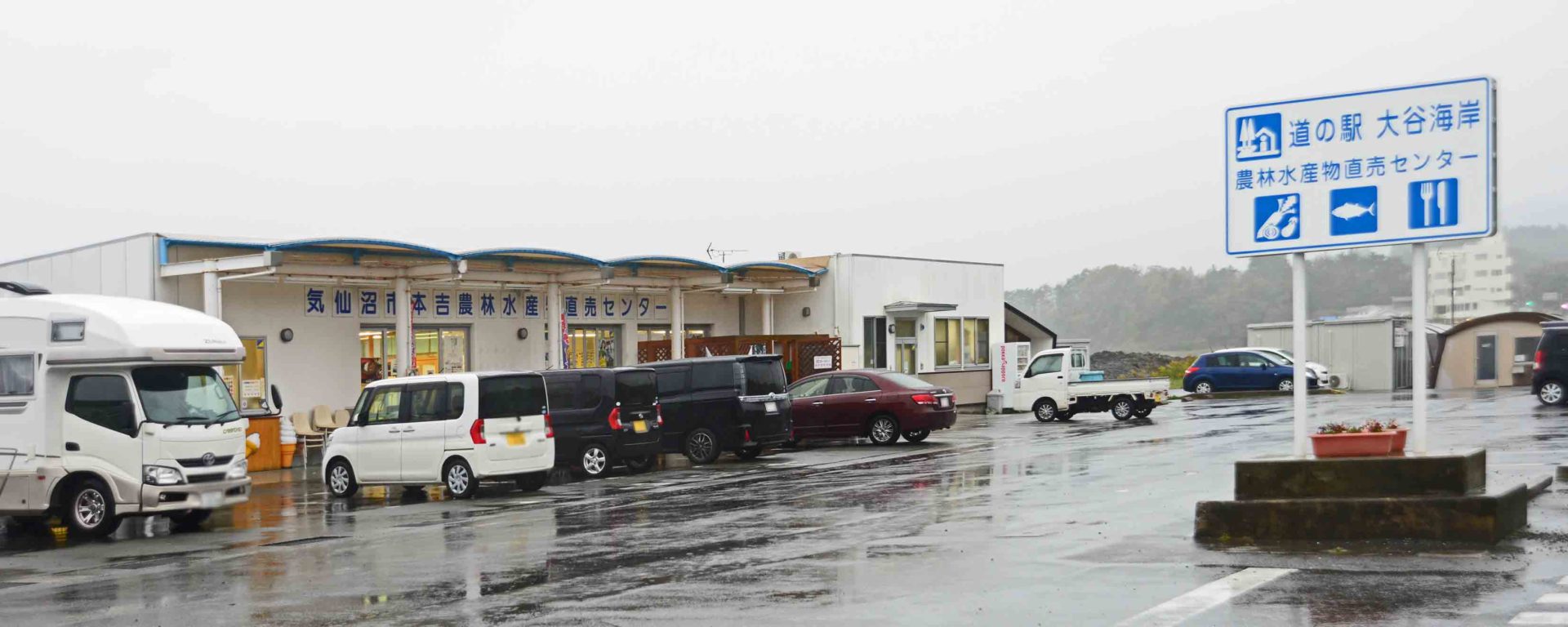 国道45号線を南三陸町から気仙沼方面へ約24km程度(約40分)行った、大谷海岸の三陸鉄道JR気仙沼線「大谷海岸駅」(東日本大震災で被災)の跡地に建てられた道の駅です。道の駅の建物の裏側には、被災した駅のホームや線路を見ることができます。元々は国道45号線を挟んで陸側に2階建ての施設がありましたが、震災で被災し、現在は仮施設として規模を縮小して営業しています。2021年に場所を移して規模の大きな道の駅になる計画が進んでいるようです。
